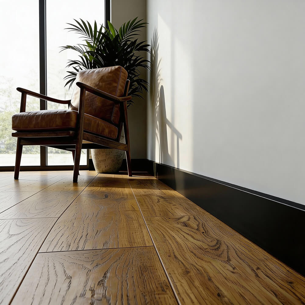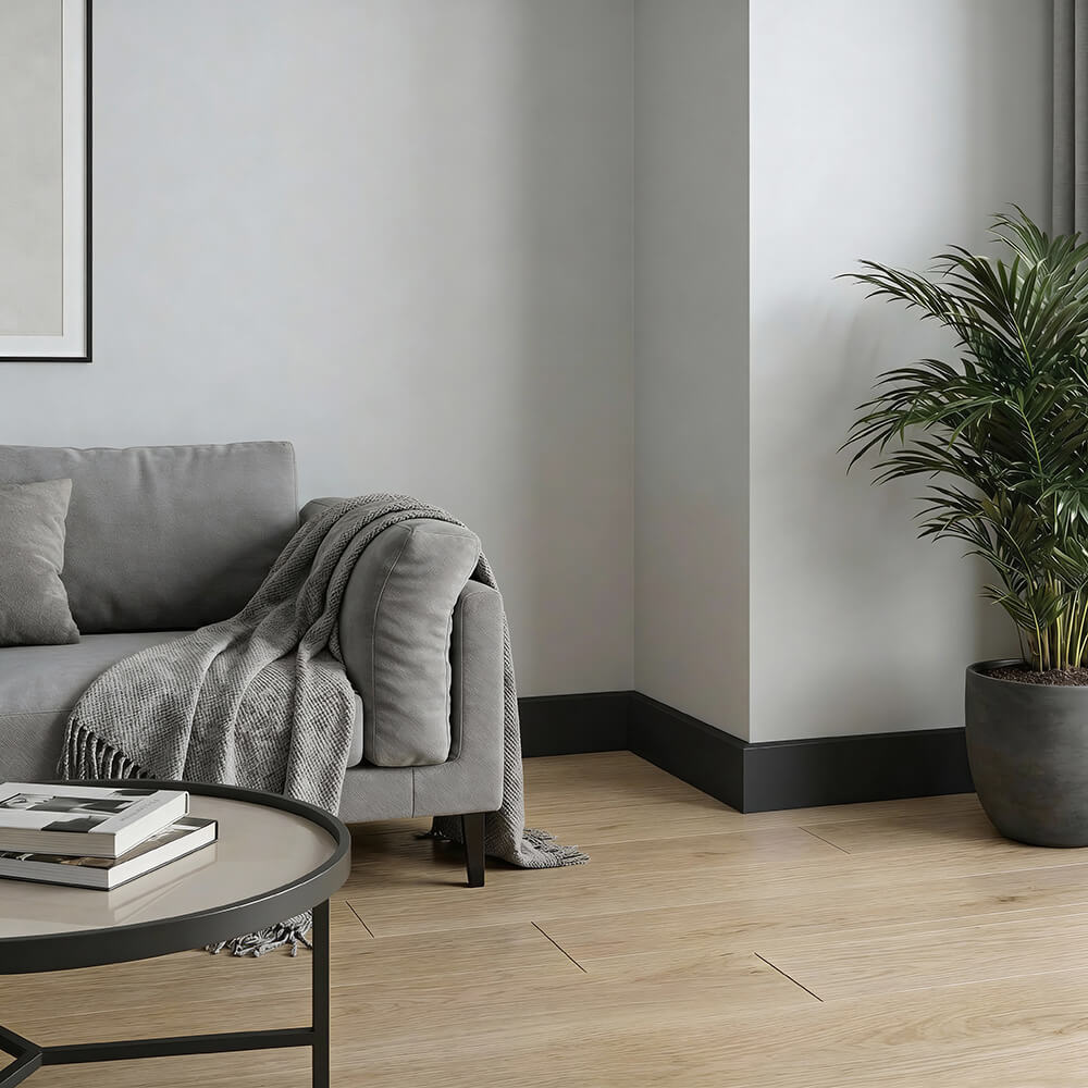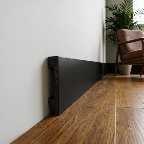 Czarna Listwa podłogowa LCL-10B z poliuretanu stanowi kluczowy element dekoracyjny, który jednocześnie podkreśla unikalny charakter pomieszczenia. Dzięki swojemu wyrafinowanemu designowi, niezawodności i wszechstronności, listwa ta jest doskonałym rozwiązaniem dla tych, którzy szukają połączenia praktyczności z estetyką w swoim domu lub miejscu pracy. Pierwszą rzeczą, która przyciąga uwagę, jest jej idealnie gładka, głęboko czarna powłoka.