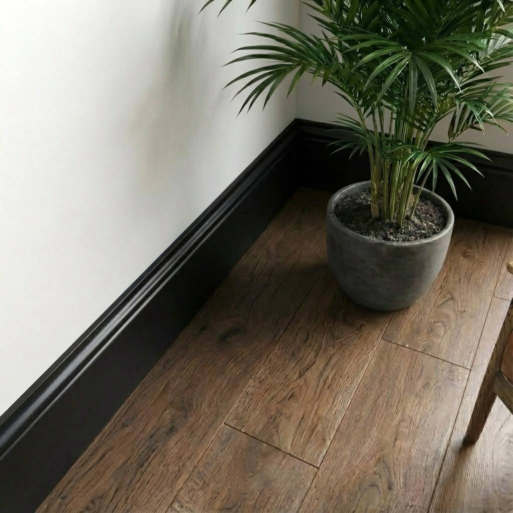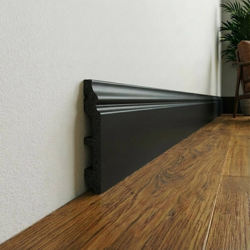 Czarna Listwa Przypodłogowa Wysoka LCL-14B o wysokości 13,8 cm to wyrazisty element wykończeniowy, który łączy funkcjonalność z elegancką, monumentalną formą. Jej imponująca wysokość oraz głęboka, czarna kolorystyka sprawiają, że listwa staje się mocnym akcentem aranżacyjnym, nadając wnętrzom nowoczesny, luksusowy i prestiżowy charakter.