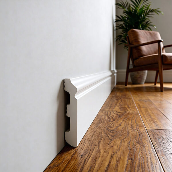 Nowoczesna Biała Listwa Przypodłogowa 8 cm LCL-07, wykonana z poliuretanu, stanowi nie tylko praktyczny element wykończeniowy, ale również elegancką ozdobę każdego rodzaju przestrzeni. Jej wyjątkowy design, trwałość i uniwersalność sprawiają, że jest ona wyborem preferowanym przez tych, którzy poszukują połączenia funkcjonalności z estetyką.
