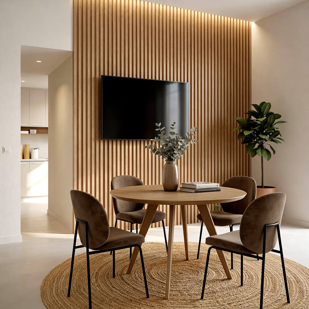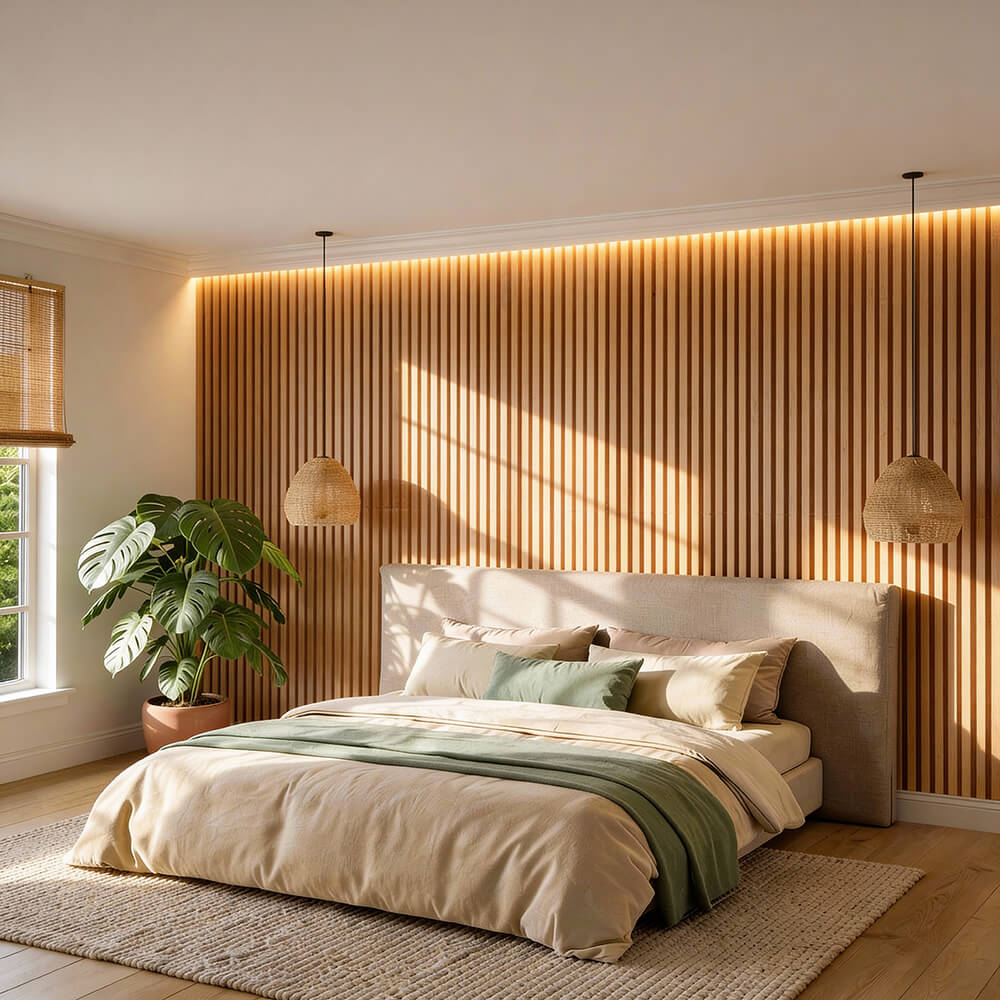 Standardowe listwy bywają za krótkie, co zmusza do tworzenia nieestetycznych łączeń w połowie ściany, zaburzając pionowy rytm dekoracji. Nasze lamele zostały zaprojektowane w ten sposób aby rozwiązać ten problem. Długość 280 cm całkowicie rozwiązuje ten problem.