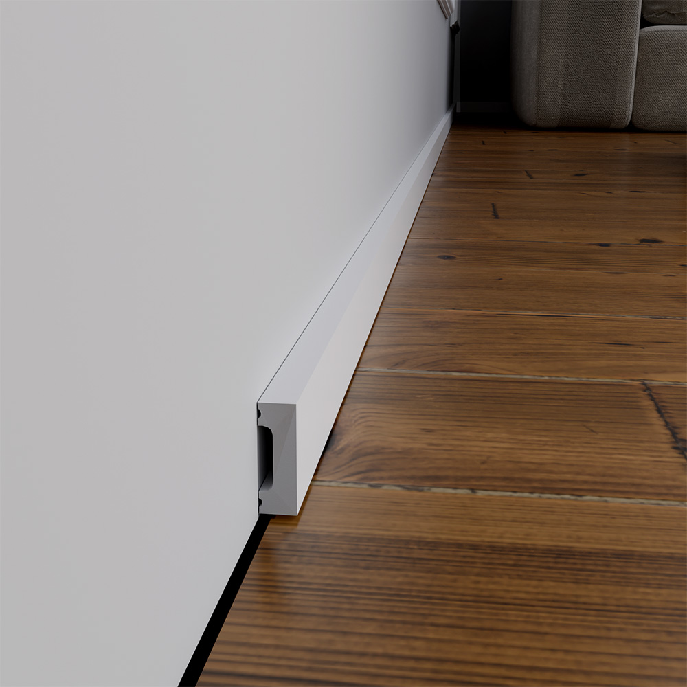 Dzięki lekkiej, a zarazem solidnej konstrukcji, listwę LCL-04 można w prosty sposób dopasować do potrzebnych wymiarów i zamontować przy podłodze. Jej niska forma sprawia, że montaż jest jeszcze wygodniejszy, szczególnie w pomieszczeniach z ograniczoną przestrzenią lub tam, gdzie wyższe listwy nie pasowałyby do aranżacji.