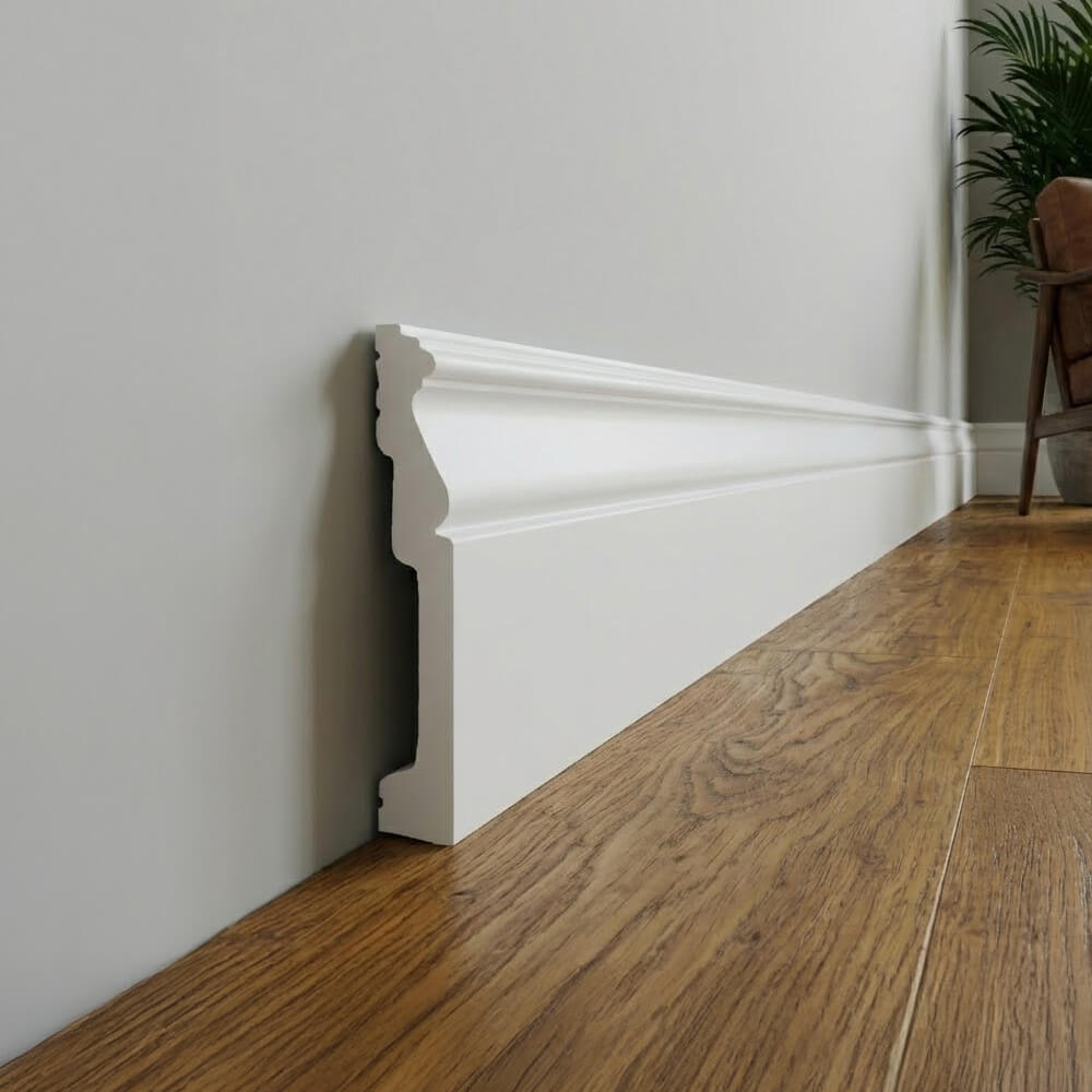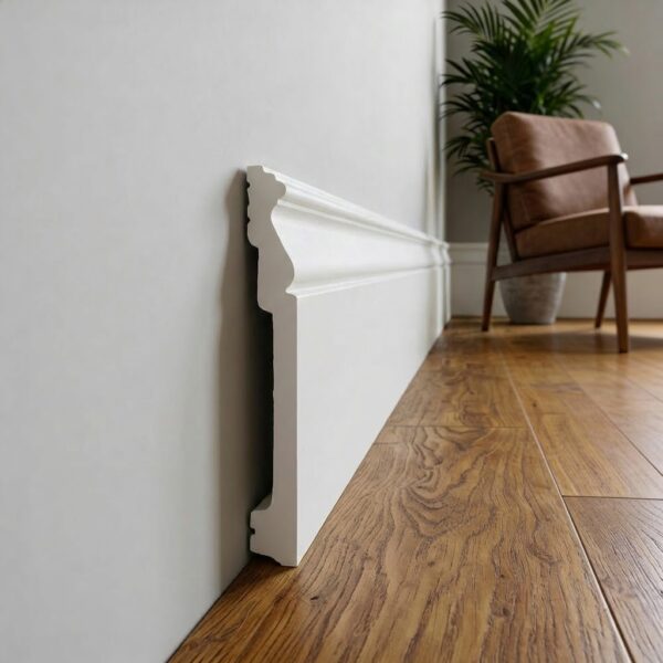 Listwa LCL-20, wykonana z wysokogatunkowego poliuretanu, charakteryzuje się wysoką twardością i odpornością na uszkodzenia mechaniczne. Dzięki swojej imponującej wysokości pełni nie tylko funkcję dekoracyjną, ale także skutecznie zabezpiecza dolne partie ściany, zapewniając elegancki wygląd i trwałość na długie lata.